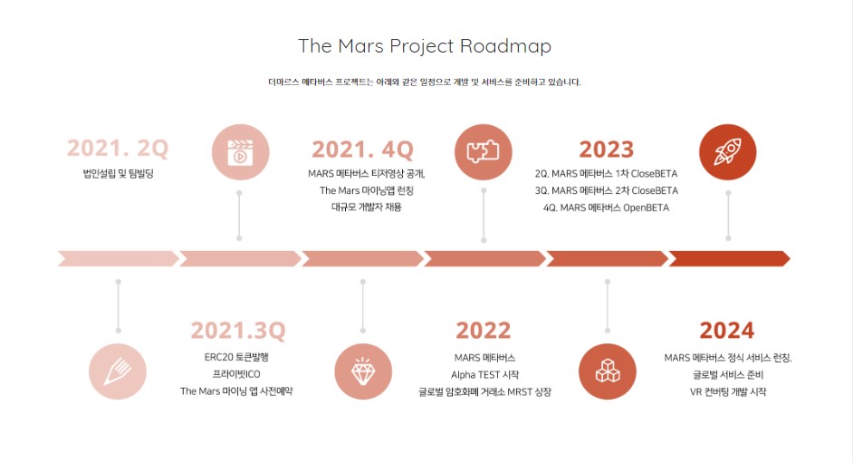로드맵을 보면 2022년 글로벌 암호화폐 거래소에 MRST 상장계획이 있습니다. 초기 상장 시 시가총액에 대한 궁금증이 많으실 텐데요, 초기 유통량은 10억개 정도로 보고 토큰의 가치를 예상하면 될 것으로 예측됩니다.
